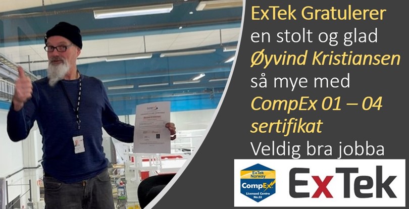 ExTek GRATULERER en glad og fornøyd Øyvind Kristiansen i NOV med CompEx 01 - 04 sertifikat. veldig bra jobba!!!