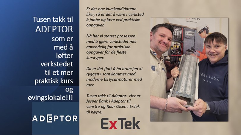 Takk Adeptor. Ex Lysarmaturer til praktisk undervisning i verksted.
