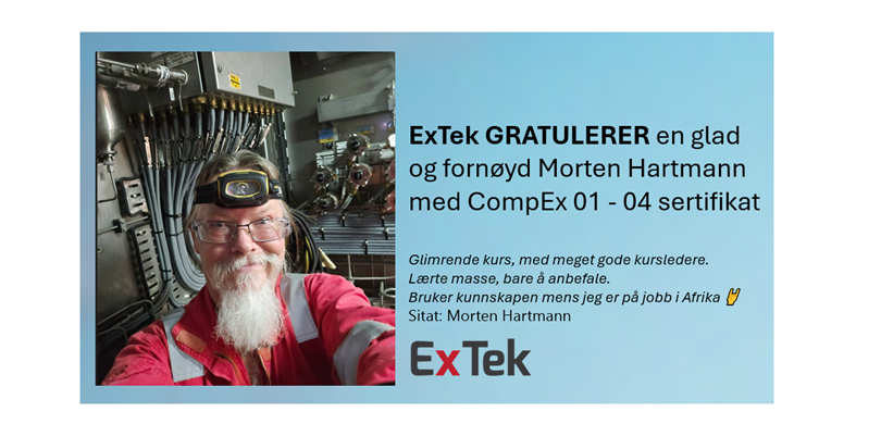 ExTek GRATULERER en glad og fornøyd Morten Hartmann med CompEx 01 - 04 sertifikat