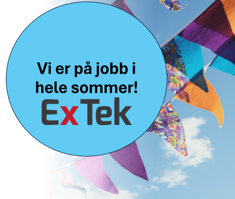 Vi er på jobb i hele sommer. Det er litt redusert åpningstid og bemanning, men vi vil hjelpe så raskt som mulig Det er bare å ta kontakt på post@extek.no. Snakkes der!