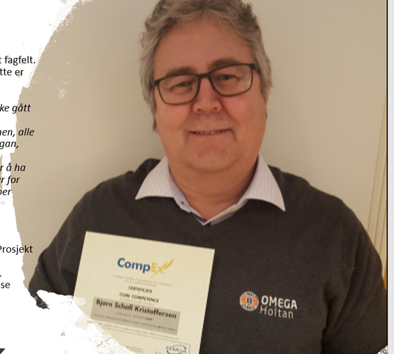 Men det må sies at det var litt rart å bli validert på min faglige kompetanse etter å ha jobbet innen Ex i alle år, men nå kan jeg stolt henge opp sertifikatet og jeg er klar for nye Ex utfordringer i jobben som Fagansvarlig Ex / senior Instruktør sier Bjørn Silber Schjøll Kristoffersen. ” i Omega Holtan