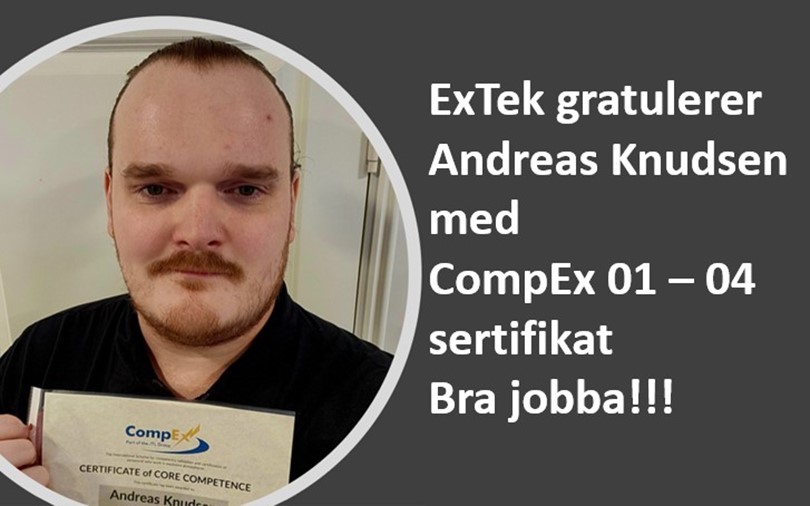 Vi GRATULERER Andreas Knudsen med CompEx 01 - 04 sertifikat. Veldig bra jobba!!!