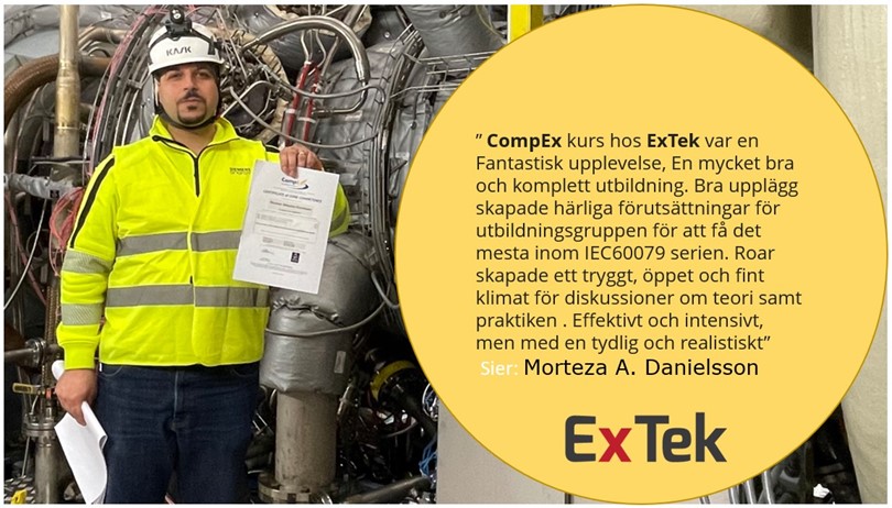 Extek Gratulerer Morteza A. Danielsson med CompEx 01 - 04 sertifikat