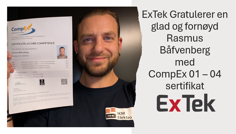 ExTek gratulerer en glad og fornøyd Rasmus Båfvenberg med CompEx 01 - 04 sertifikat. Bra jobba!!!