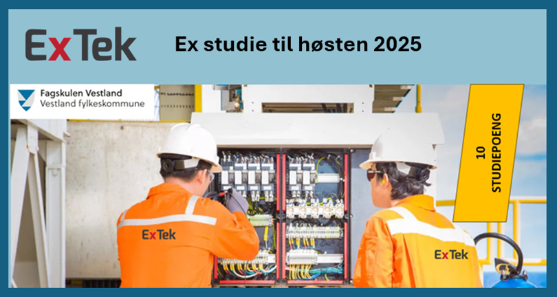ExTek har undervist på Fagskulen siden 2022 og nå til høsten blir det en ny klasse. Følg med på Fagskulen Vestland og meld deg på derNå er vi godt i gang med Ex undervisningen for gruppe A og til høsten er det Gruppe B som starter i august med påmeldingsfrist den 31.mai.