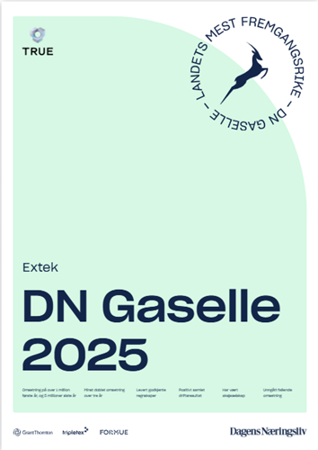 Så stolt for å kunne vise at vi i ExTek har blitt en Gasellebedrift i 2025! Stor takk til alle kunder og samarbeidspartnere som har vert med å utvikle ExTek til det vi er i dag.
